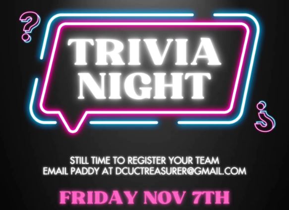 Friday November 7th. Trivia starts at 6:15pm, arrive early for pizza before we start.